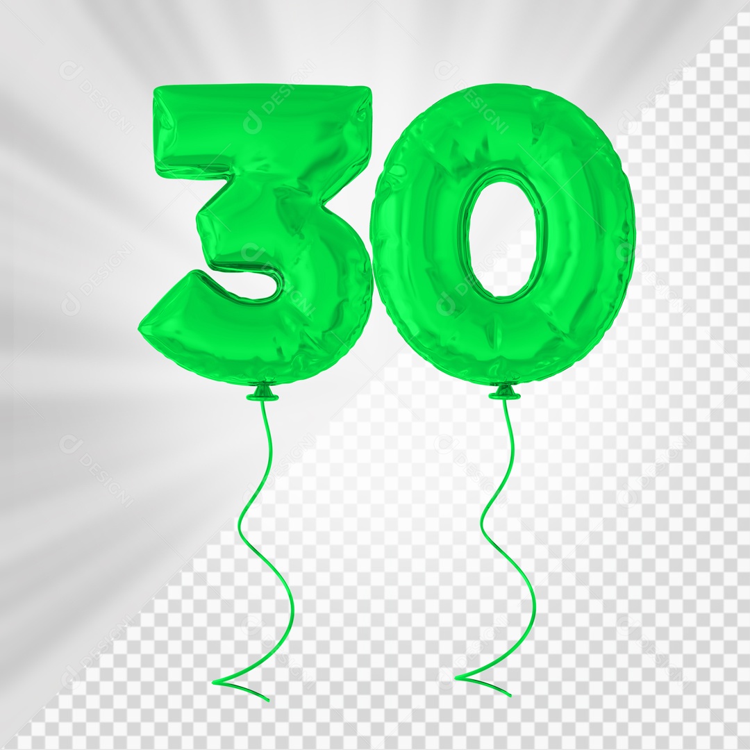 Balão De Festa Verde De Número 30 Elemento 3D Para composição PSD