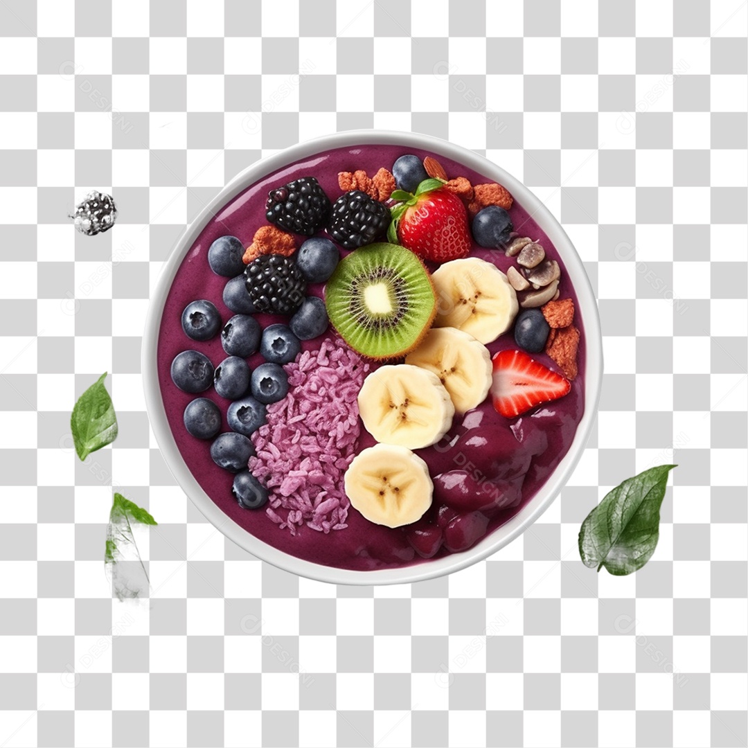 Açaí na Tigela com Mirtilo e Morango Banana Kiwi Fundo PNG Transpar...