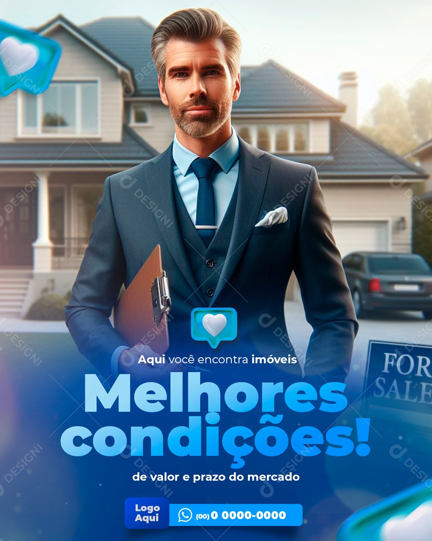 Aqui Você Encontra Imóveis Social Media PSD Editável
