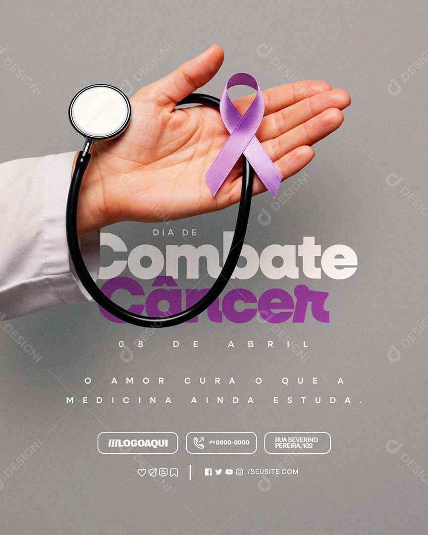 Dia de Combate ao Câncer 08 de Abril O Amor Cura Social Media PSD Editável