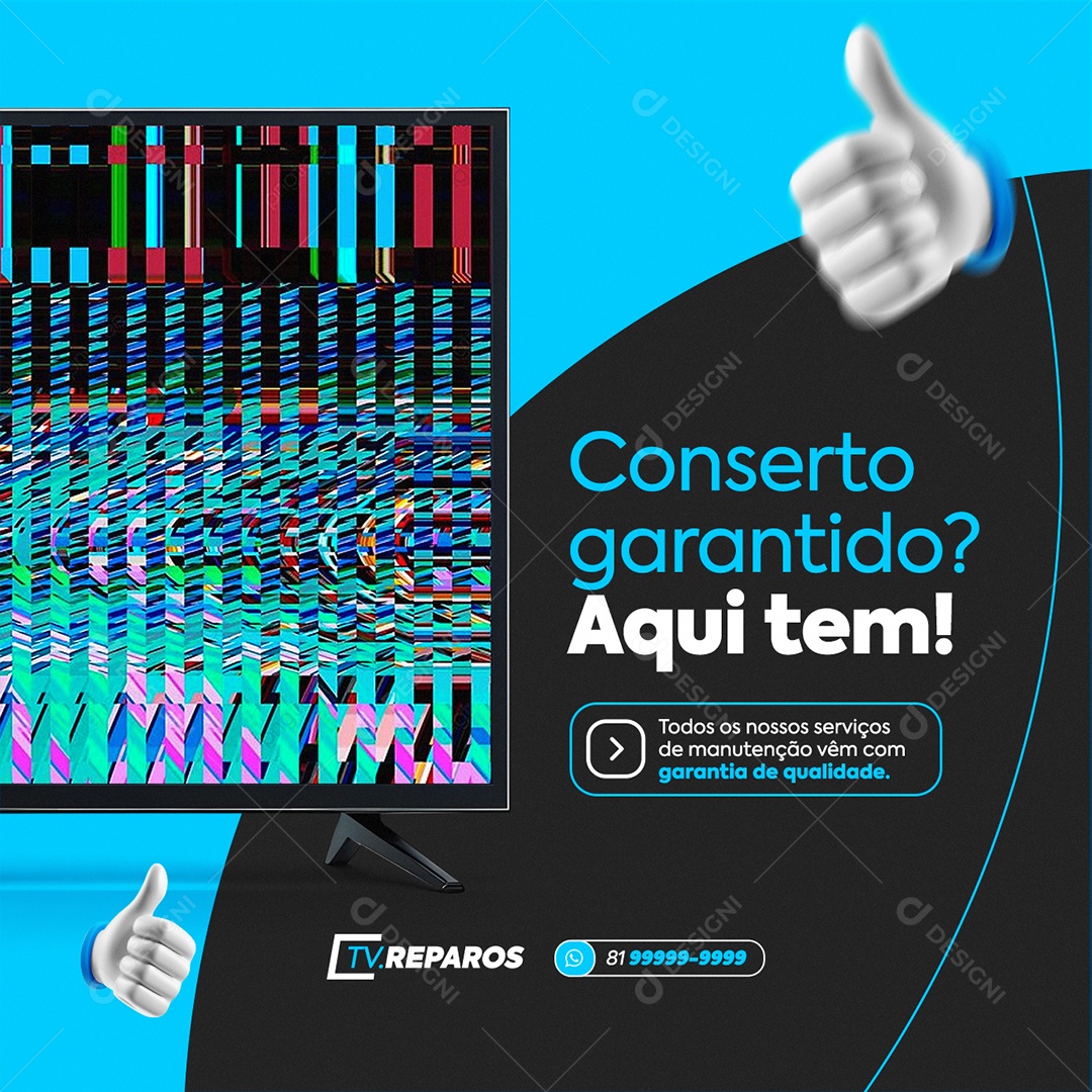 Manutenção De TV Conserto Garantido Aqui Tem Social Media PSD Editável
