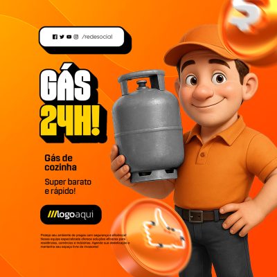 Gás de Cozinha Horário de Funcionamento Social Media PSD Editável