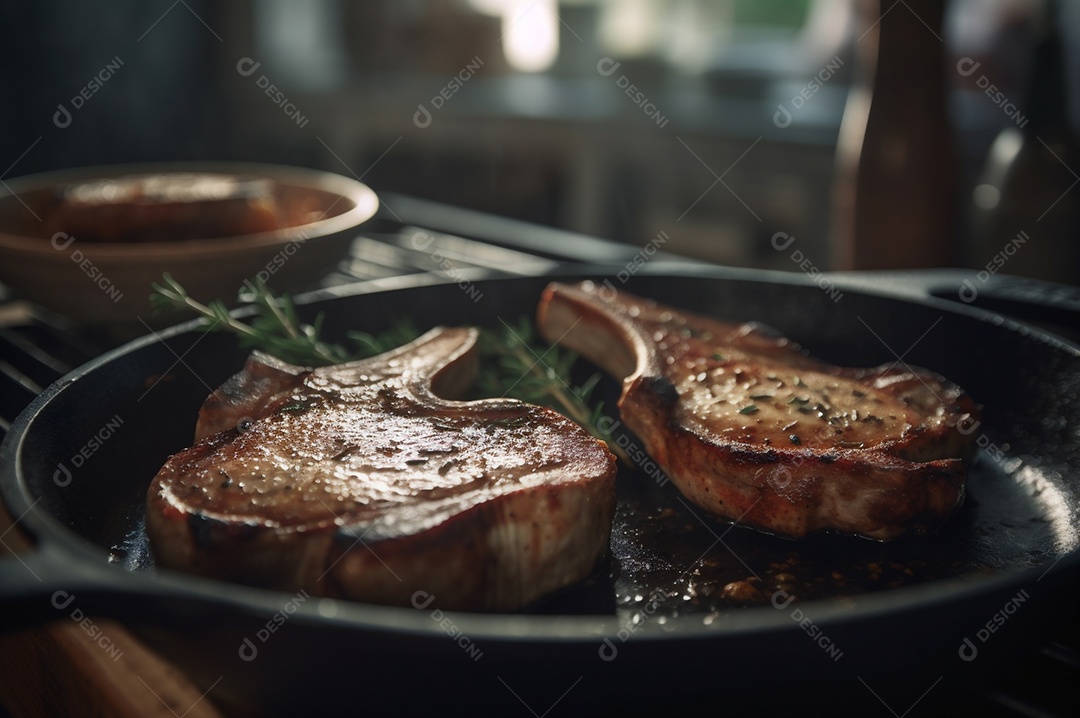 Costeletas de porco grelhadas ou assadas no osso com alho, alecrim ...