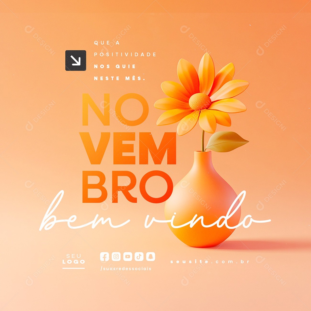 Bem Vindo Novembro Que a Positividade Nos Guie Neste Mês Social Media PSD Editável