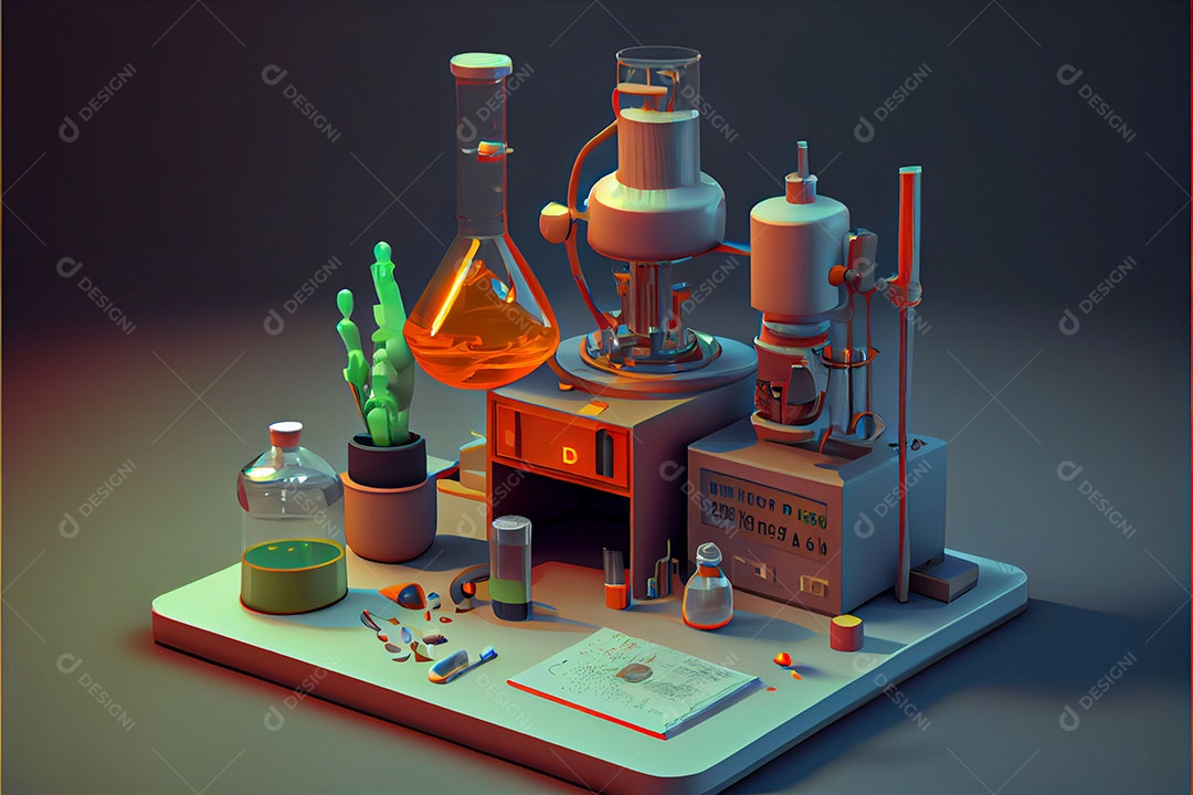 Ciência de laboratório de desenho animado Renderização 3D realista ...
