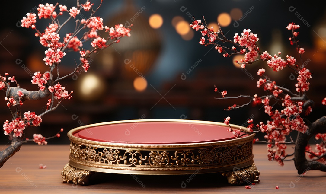 Pódio de cilindro vermelho para apresentação de exibição de produtos, ano novo chinês, festivais chineses, Festival do Meio Outono, cartaz, cartão de felicitações