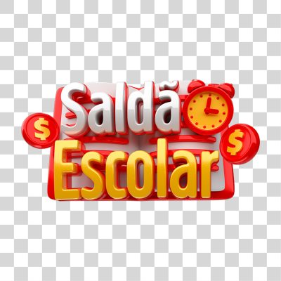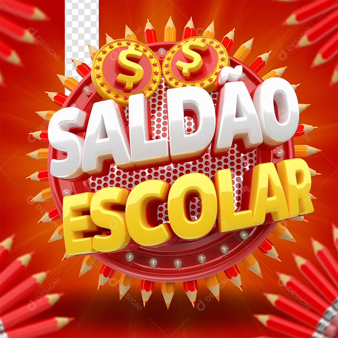 Saldão Escolar Selo 3D Branco e Amarelo para Composição PSD