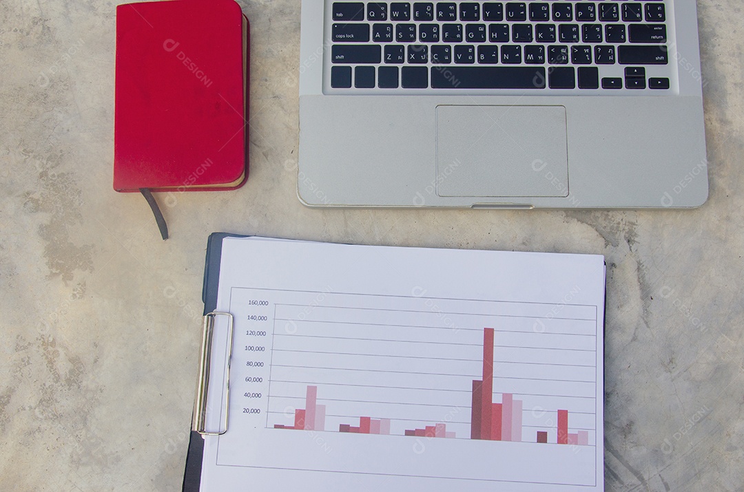 Negócios gráficos de papel financeiro e laptop.