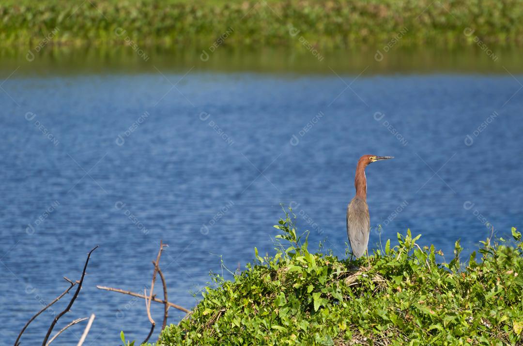Belo Soco Boi ou Rufescent Tiger-Heron (Tigrisoma lineatum) no pantanal brasileiro.