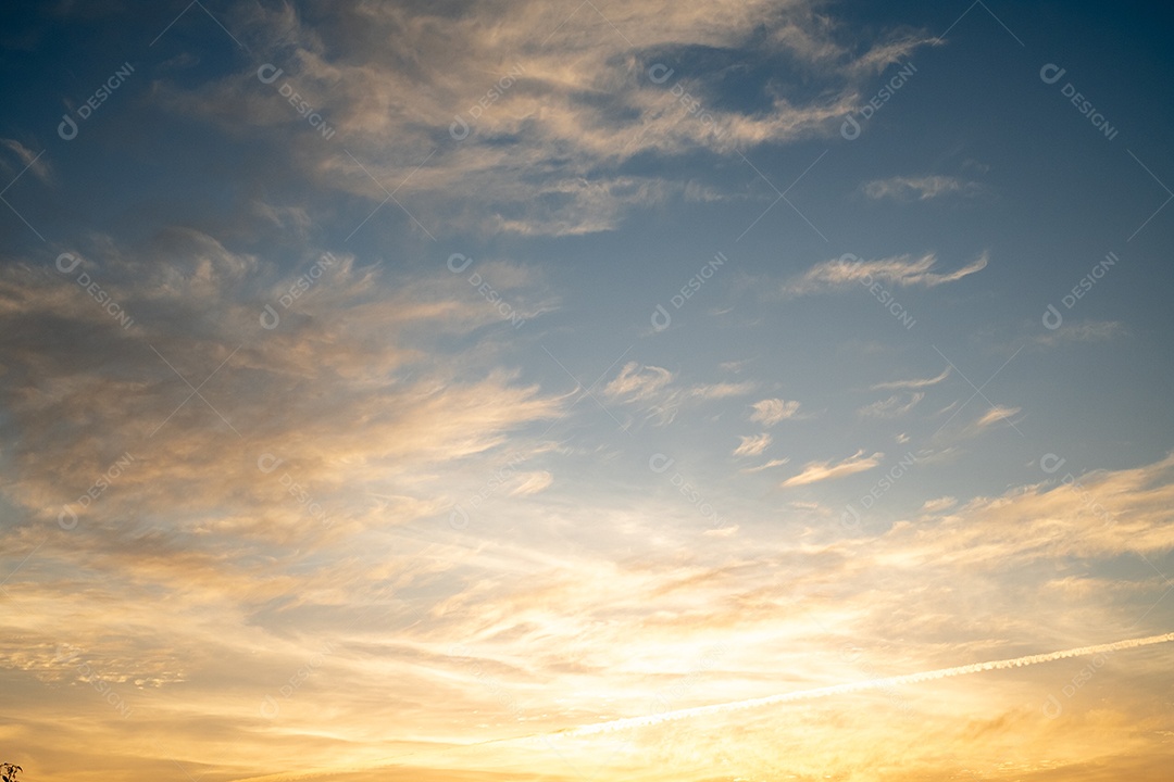 lindas e luxuosas nuvens de ouro laranja com gradiente suave e luz solar no céu azul perfeito para o fundo, aproveite a noite