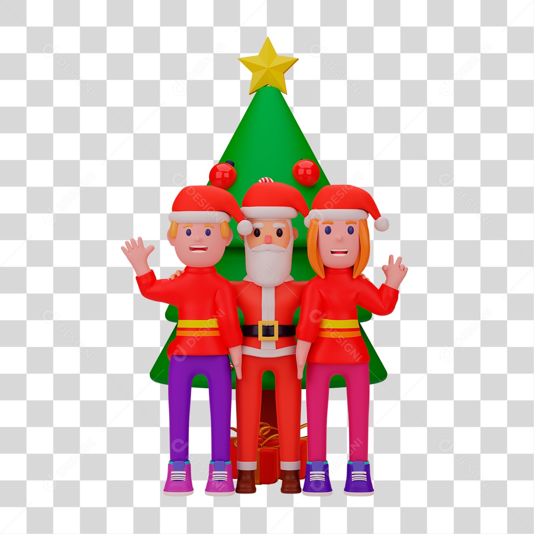 Elemento 3D de Papai Noel e Duendes Perto de Árvore de Natal PNG Tr...