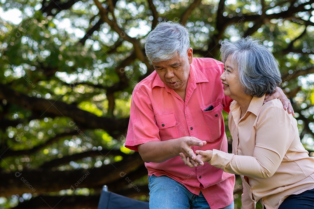 Casal de asiáticos se divertindo juntos em um parque ao ar livre