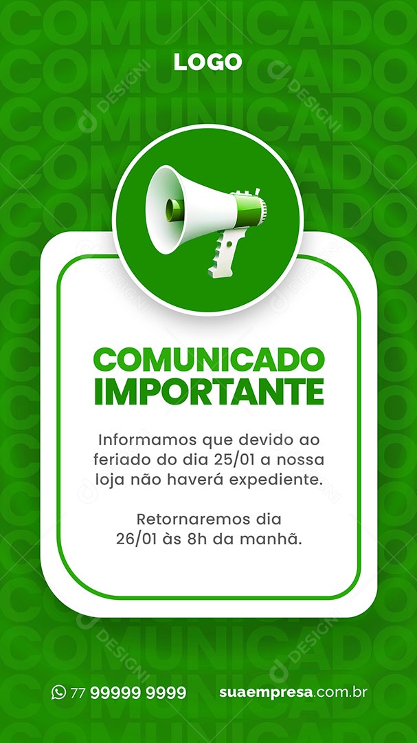 Story Comunicado Importante Retornaremos Dia 26/01 Social Media  PSD Editável