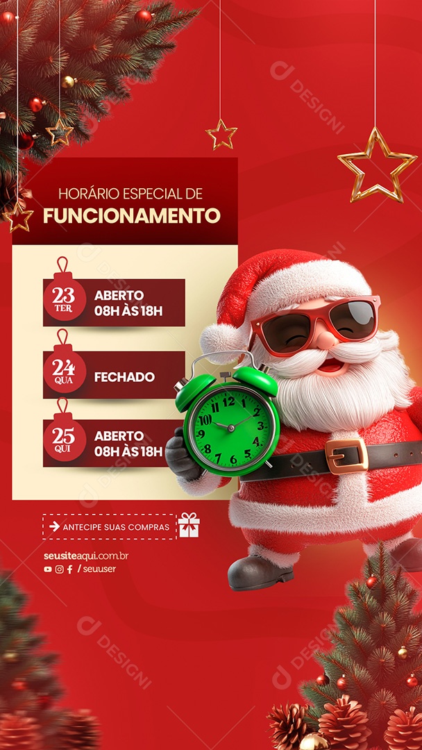 Story Horário Especial Funcionamento Natalino Social Media PSD Edit...