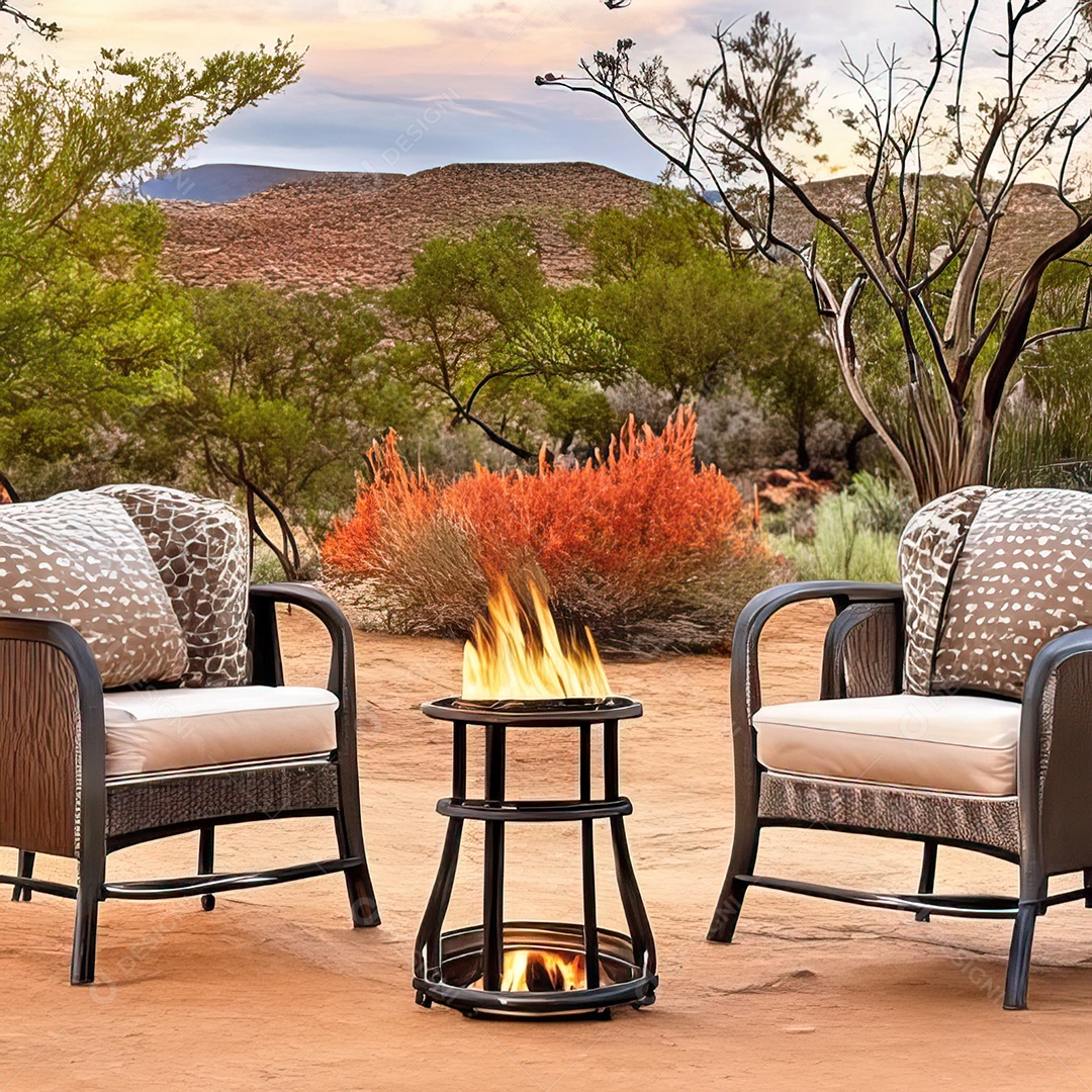 Duas poltronas em uma fogueira em um ambiente natural aberto