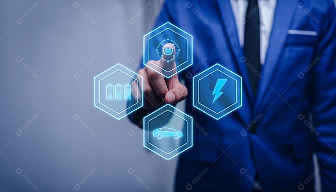 Escolhendo um veículo elétrico. escolha do carro elétrico. apontando para o símbolo