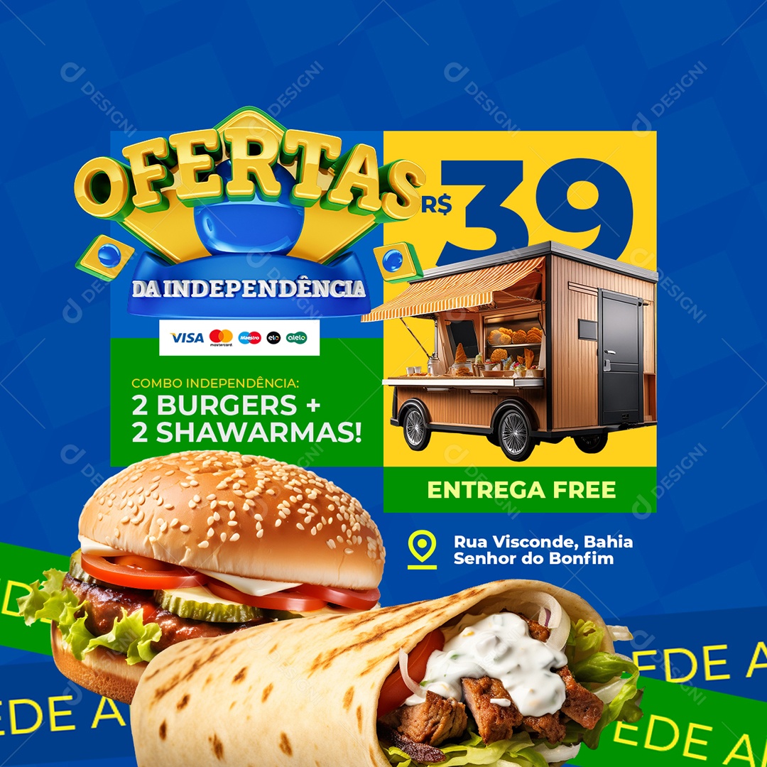 Ofertas da Independência Lanche Como Burguers Shawarmas Social Media PSD Editável