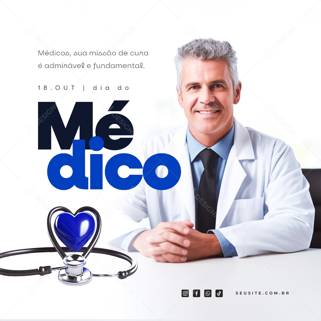 Dia do Médico 18 de Outubro sua Missão de Cura é Admirável e Fundamental Social Media PSD Editável