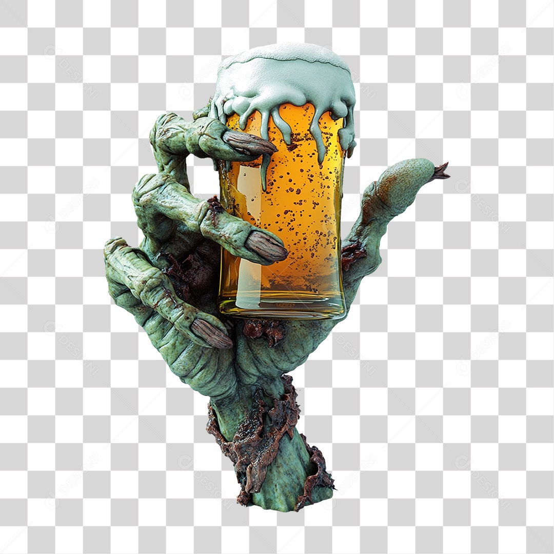Elemento 3D Mão de Zumbi com Copo de Cerveja Halloween PNG Transpar...