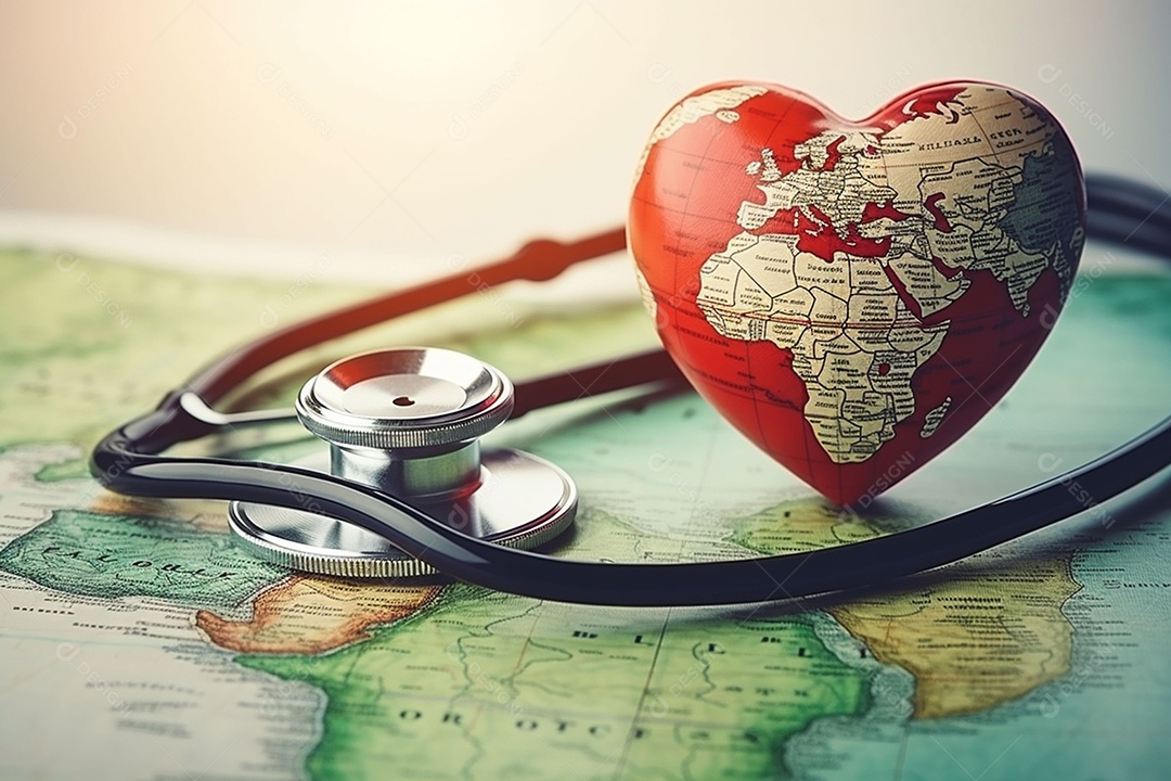 Um estetoscópio sobre dinheiro e um coração quebra-cabeça. Plano de saúde. Saúde e medicina. Quanto custa o tratamento. Dinheiro e remédios. Dia Mundial do Coração. Dia Mundial da Saúde.
