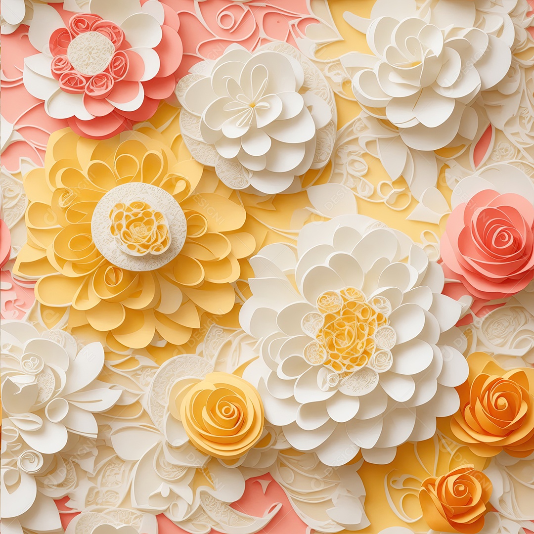 Coral rosa e rosas amarelas em papel estilo de arte padrão perfeito