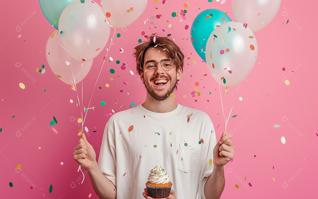 Feliz aniversariante relaxada parecendo alegre sorrindo