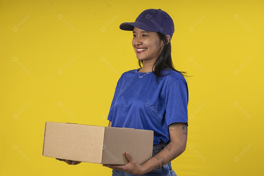 Mulher fazendo entrega de caixa