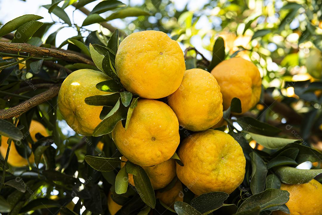 Ponkan, um tipo de tangerina. Foto da árvore, plantação JPG