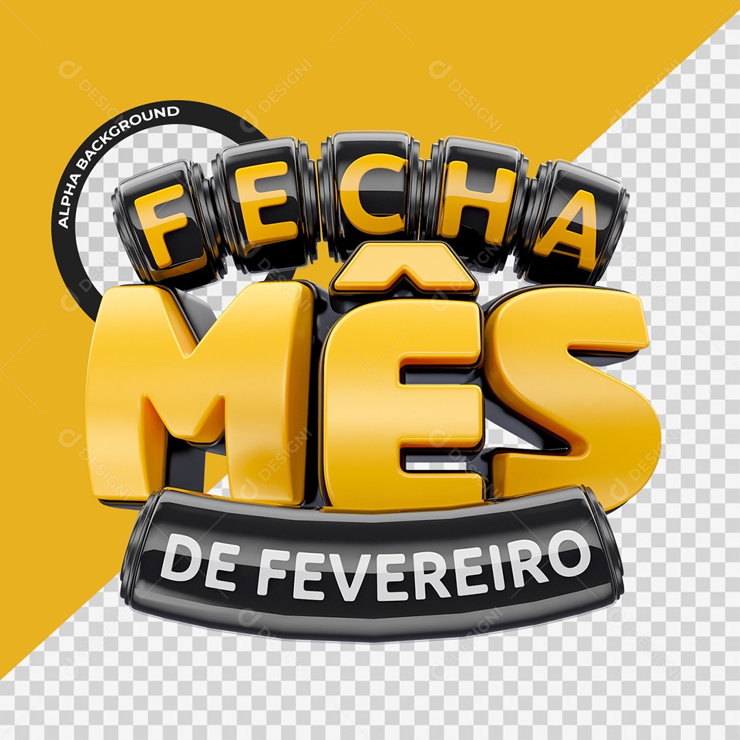 Fecha Mês de Fevereiro Selo 3D Amarelo e Preto para Composição PSD