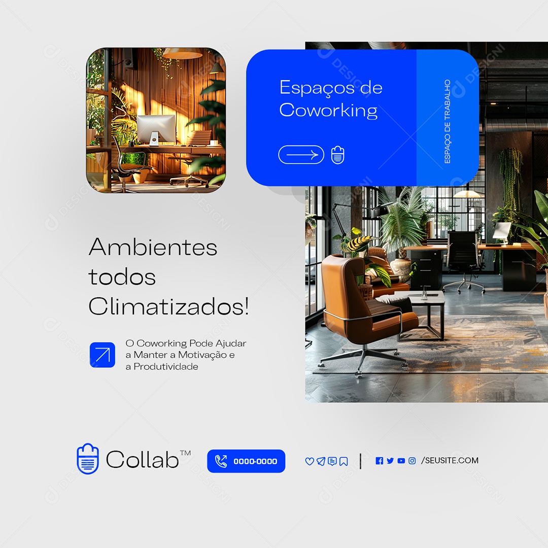 Coworking Ambientes Todos Climatizados Social Media PSD Editável
