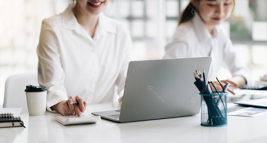 Reunião de pessoas de negócios usando laptop, calculadora, notebook