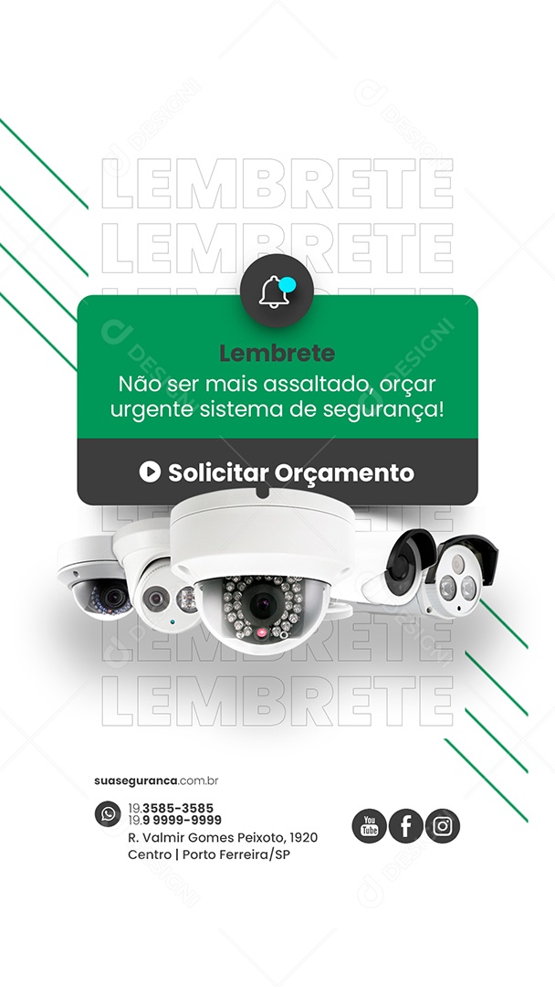 Story Não ser mais assaltado solicitar orçamento Segurança Eletrônica Social Media PSD Editável
