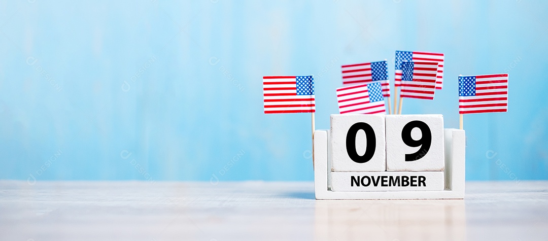 9 de novembro de calendário branco com bandeira dos Estados Unidos ...