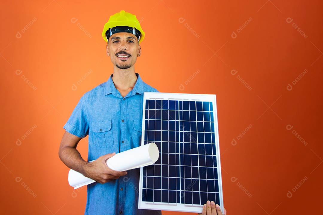 Engenheiro segurando painel solar fotovoltaico.