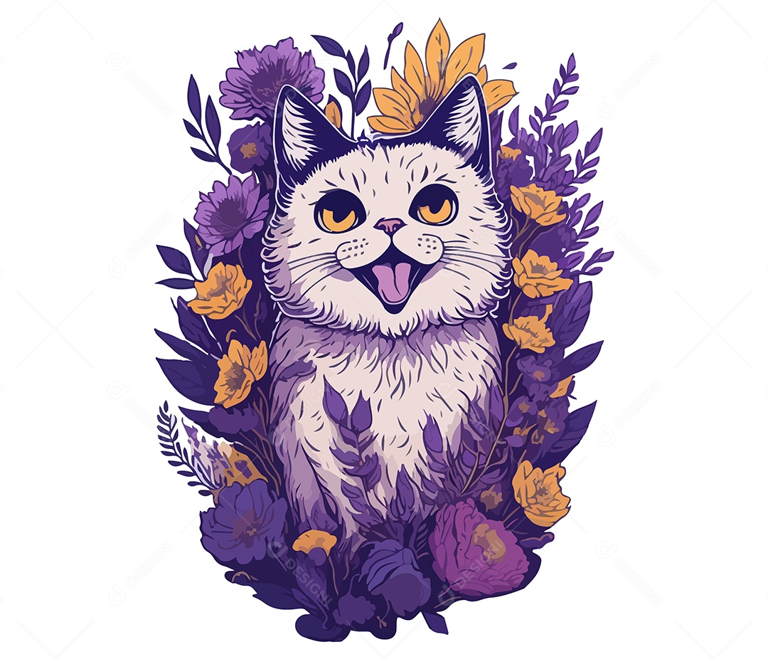 Ilustração 3D gato Com Flores EPS Editável