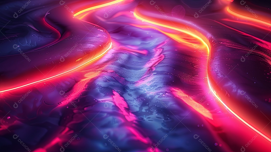 Linhas de néon abstratas fundo preto luz roxa e rosa