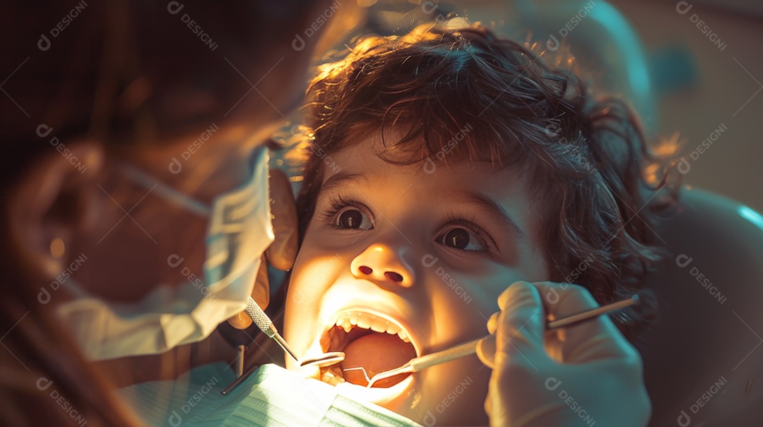 Dentista atenciosa cuidando da saúde bucal de uma criança