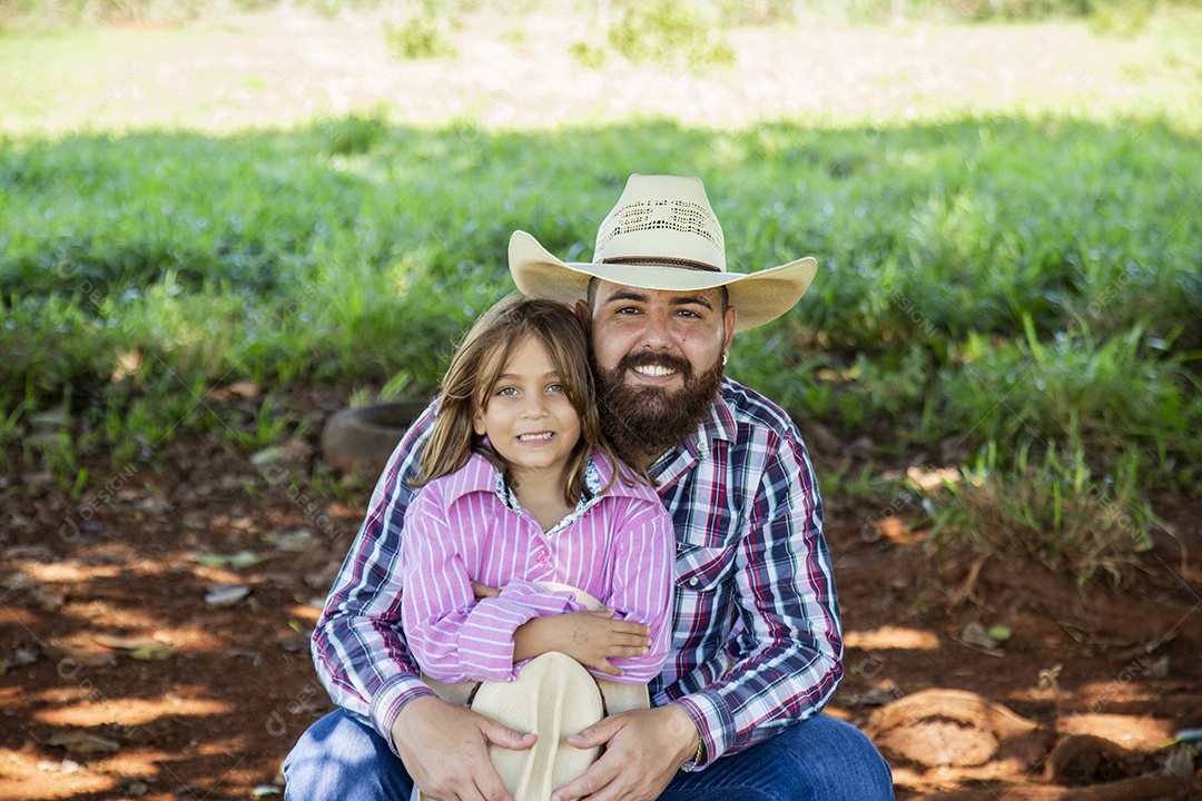 Linda garotinha feliz e sorridente brincando sobre terreno de uma fazenda