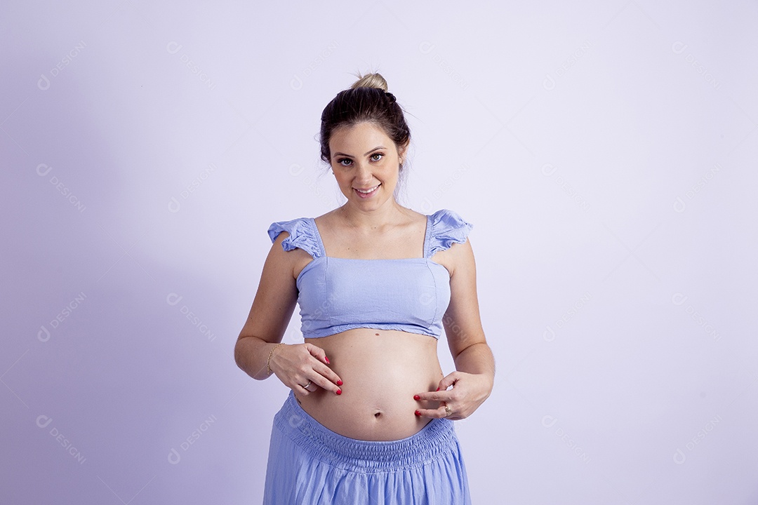 Linda mulher jovem gravida sobre fundo isolado