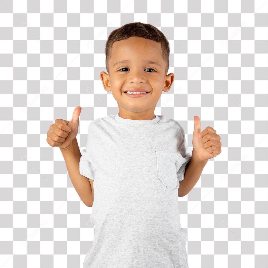 Menino de Camisa Cinza Sorrindo e fazendo gesto de Beleza ou Ok