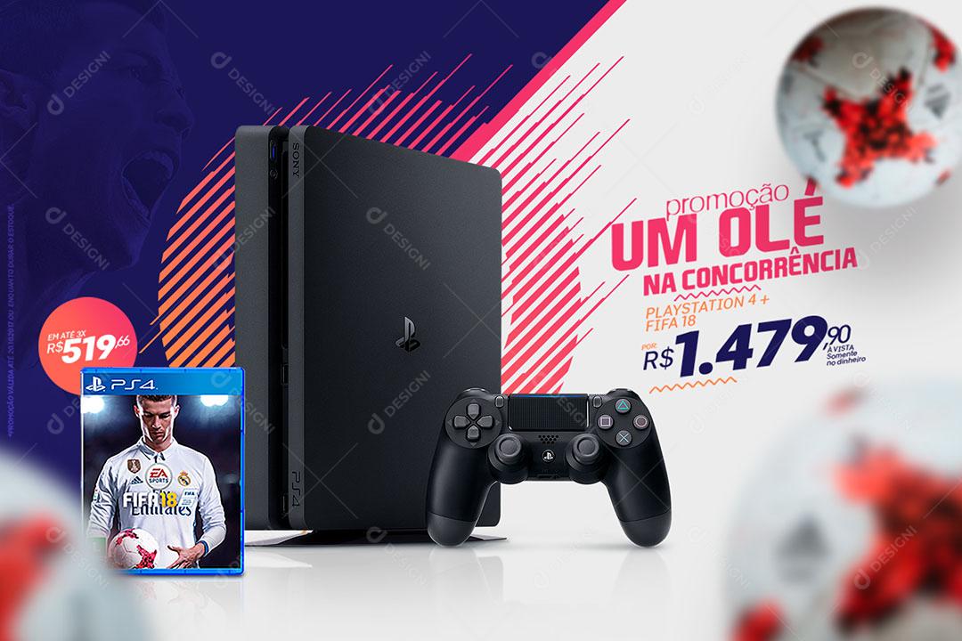 Post Banner Loja Promoção Um Olé na Concorrência Produto PS4 Social Media PSD Editável