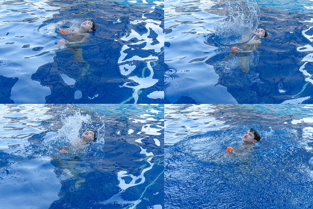 Fotomontagem mostrando uma criança sendo atingida pela explosão de água de uma bomba dágua