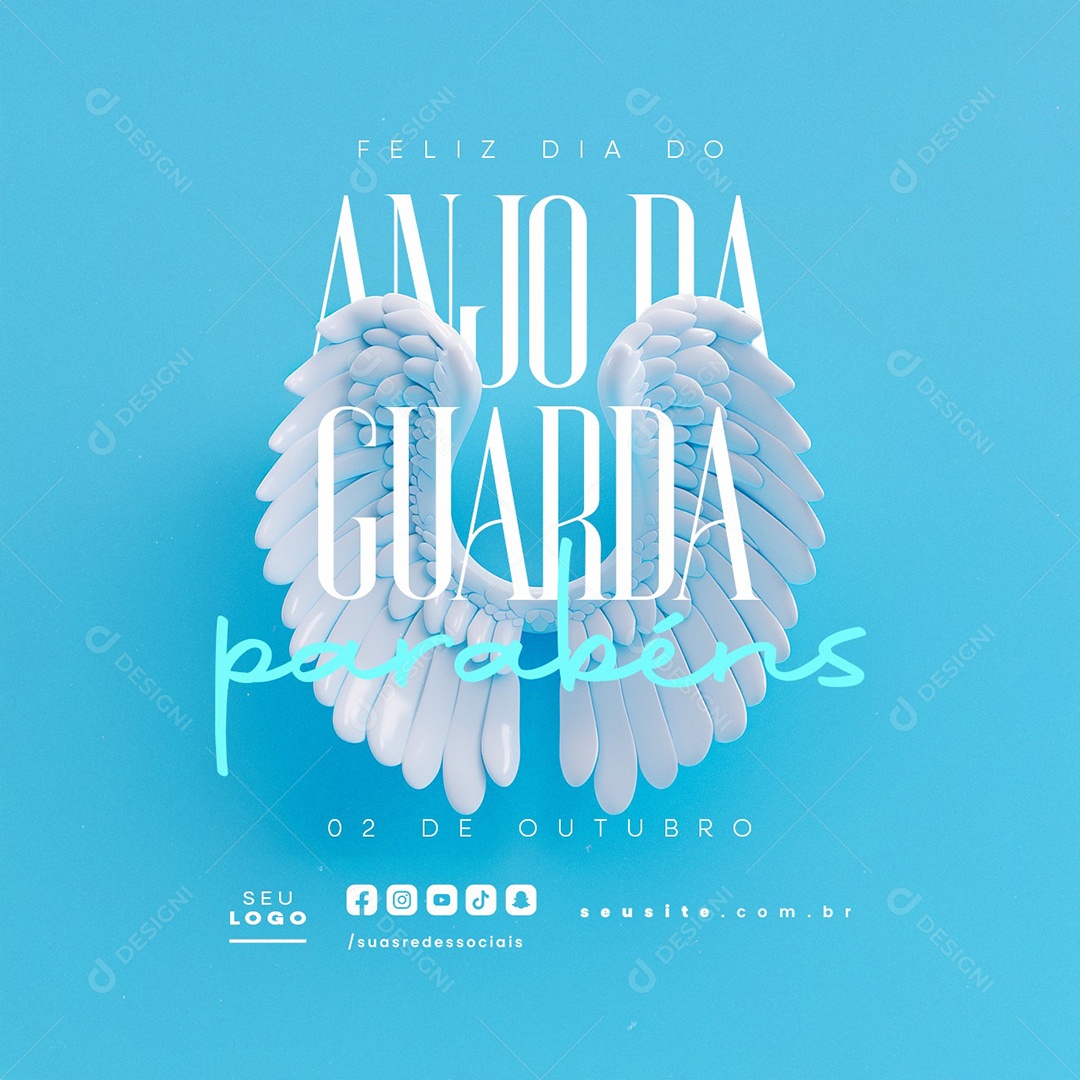 Feliz Dia Do Anjo da Guarda 02 de Outubro Parabéns Social Media PSD Editável