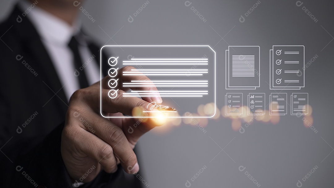 Conceito de gerenciamento de documentos. Ícones de tela virtual Ger...