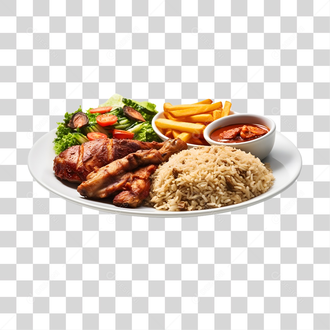 Prato De Comida Com Arroz Carne E Salada PNG Transparente