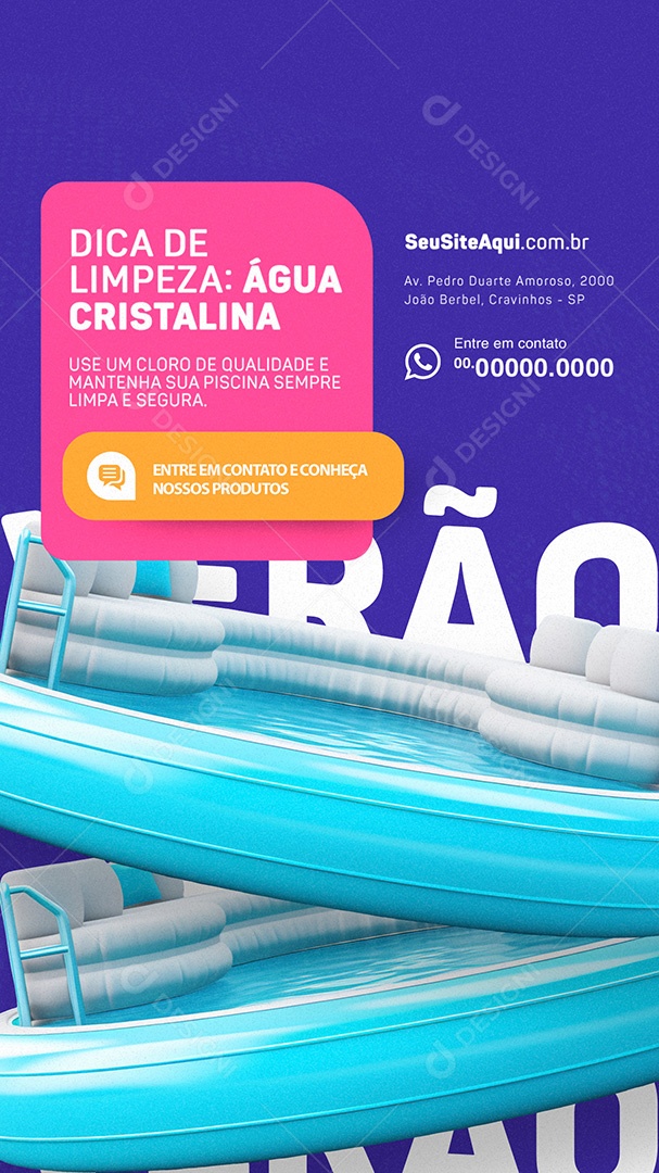 Story Loja de Piscinas Dica de Limpeza Água Cristalina Social Media PSD Editável