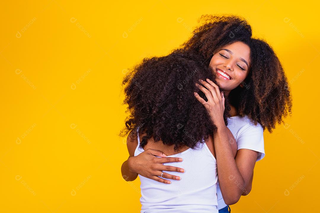 feliz Dia das Mães! Adorável doce jovem mãe afro-americana com filha bonitinha. Mãe e filha dando um abraço