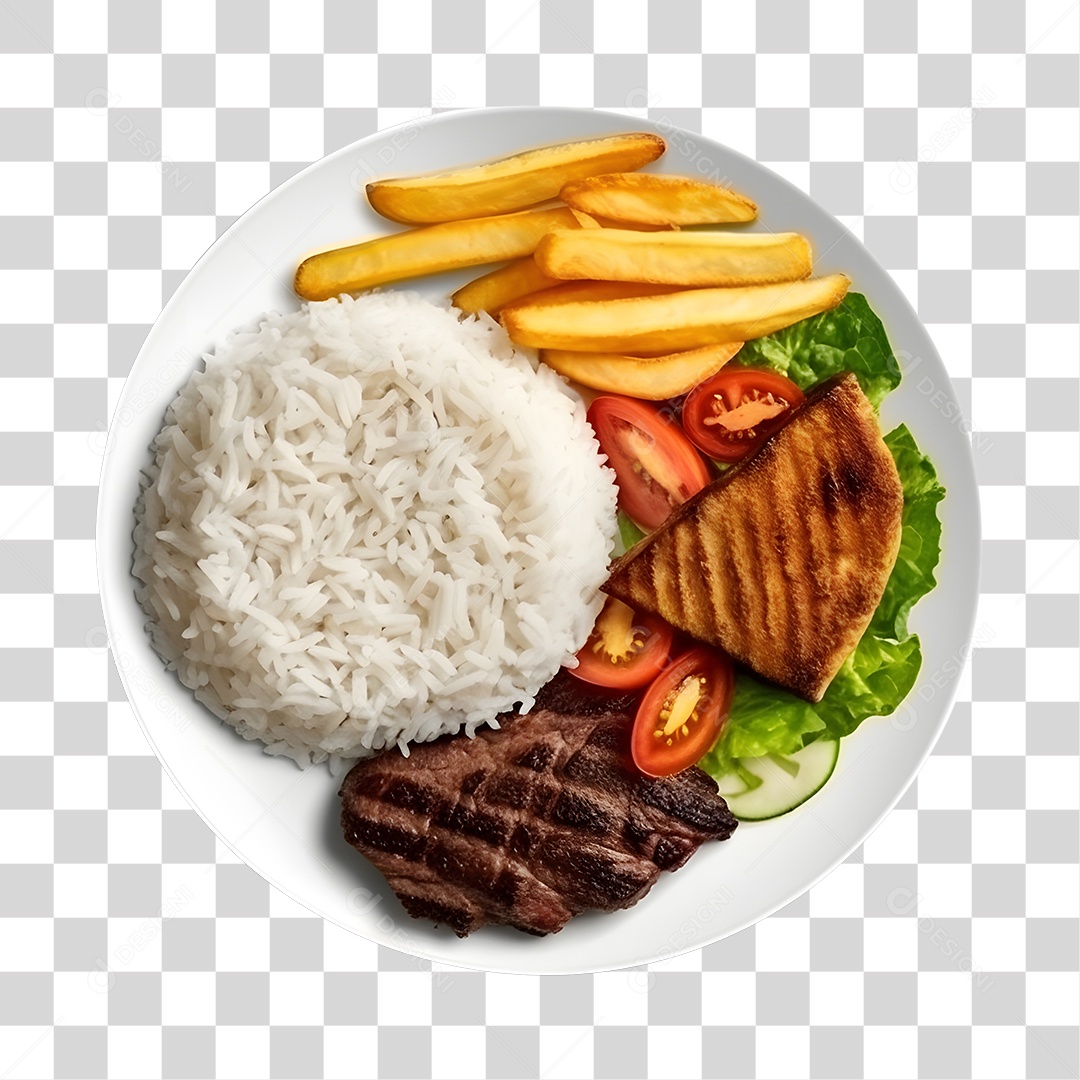 Prato De Comida Com Arroz Carne E Salada PNG Transparente