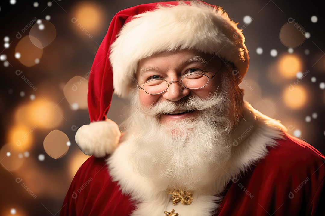 Retrato do simpático e bonito Papai Noel em sua casa sorrindo e olh...