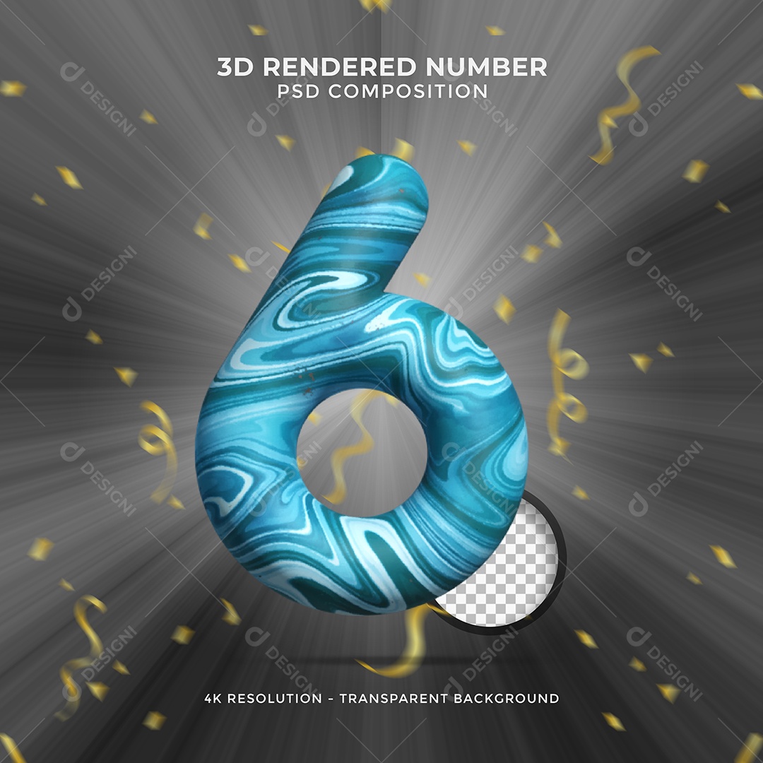 Elemento 3D Para Composições Número 6 Com Vários Tons De Azul PSD